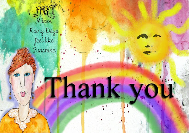 ReplyDeleteLOVE, love, love your Thank you spread, though - so bright, cheerful and Just lovely! I've really, REALLY enjoyed your challenge, and I'm sure everyone else has, too. Only problem was it was TOO good and I had to stop myself adding to it daily, lol - until the sun arrived and stopped most of the art, that is...